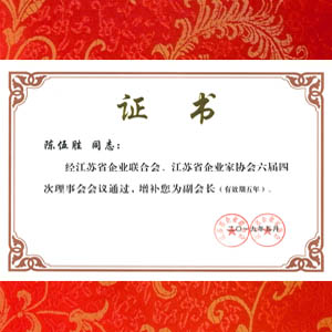 鉴于江苏通领科技有限公司陈伍胜,一直专注中国民族企业的发展,并做出了不懈努力和卓越贡献。2019年5月经江苏省企业联合会、企业家协会第六届四次理事会会议通过,增补陈伍胜先生为江苏省企业联合会、企业家协会第六届理事会副会长。